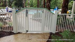 The last popular aluminum pool gate design is the ornamental multi-panel gate. This gate is made up of several panels and can open inwards, outwards, or both. This gate is the most secure and is ideal for larger pools.